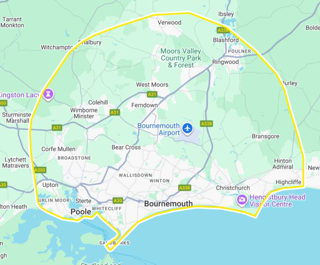We work in Ferndown, Wimborne, Colehill, West Parley, West Moors, Broadstone, Canford Cliffs, Winton, Moordown, Muscliff, Littledown, St Catherine’s Hill, Southbourne, Iford, Corfe Mullen, Talbot Woods, Branksome, Bournemouth, Poole, Christchurch, Highcliffe, Ringwood, Verwood etc.