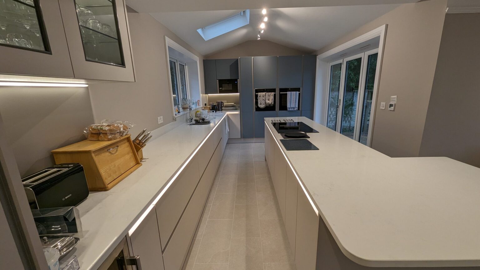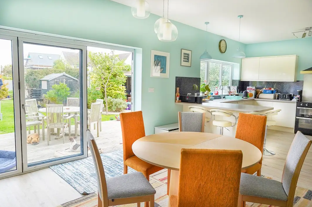 We replaced the floor, added bi-folding doors, added an opening roof light and installed an integrated Sonos sound system.